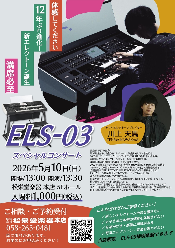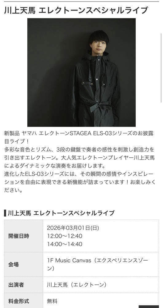 川上天馬独自のサウンドで聴く人を魅了する若手エレクトーンプレイヤー。